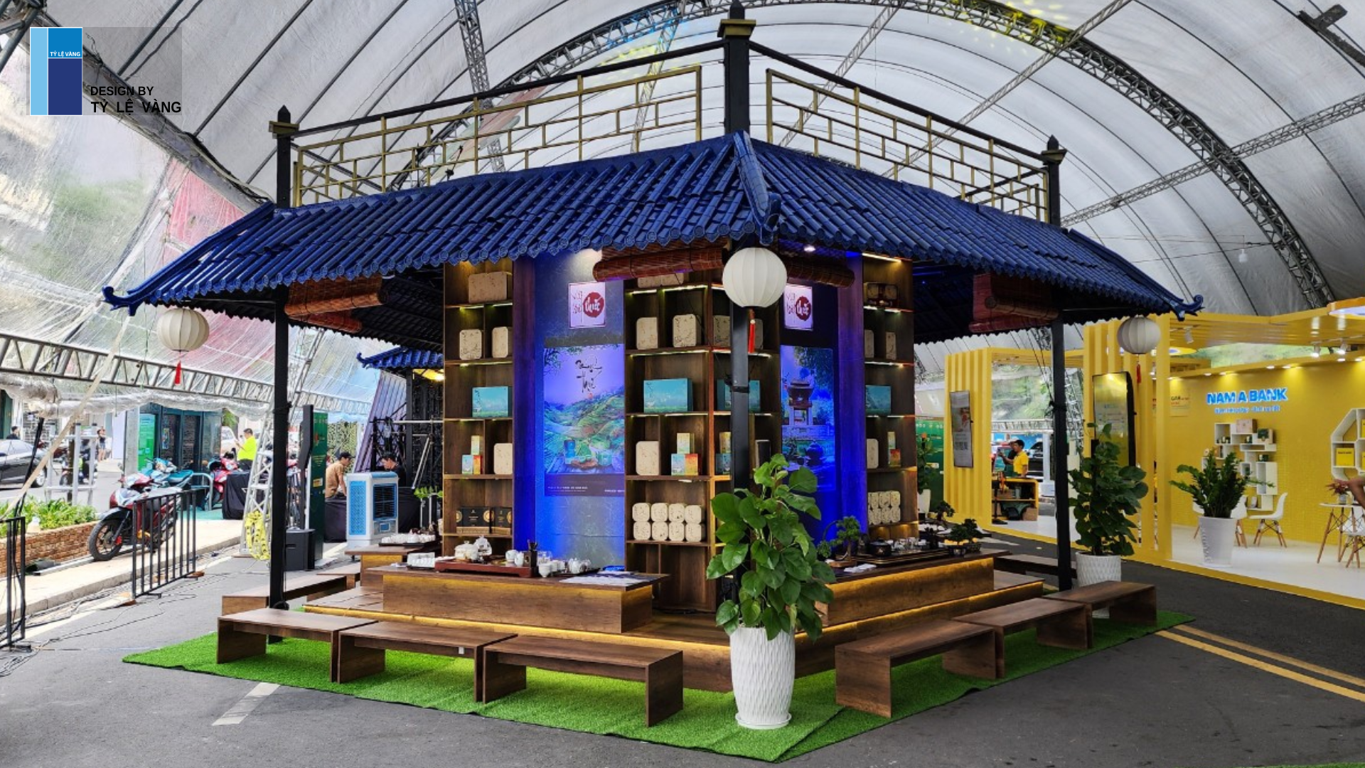 Không gian triển lãm Việt Trà Thức được Đơn vị Tỉ Lệ Vàng thiết kế với 5 gian hàng đại diện cho ” Mộc thức, Văn thức, Ngự thức, Tĩnh thức, Thư thức” đây cũng chính là tên gọi của các sản phẩm thuộc tên gọi Việt Trà Thức. Chúng tôi thi công nội thất và lắp đặt bố trí nội thất mang tính khoa học phù hợp với không gian nhỏ tại triển lãm. Tủ, kệ và bàn ghế phù hợp tiêu chí thiết kế nhưng vẫn đảm bảo sự thoải mái cho Quý khách tham dự và trải nghiệm trực tiếp tại quầy. Chúng tôi lựa chọn vật liệu thân thiện mang đến sự trải nghiệm cho khách hàng, và đồng bộ từ việc thiết kế không gian và thi công nội thất để tạo nên không gian thưởng thức trà với chủ đề sự kiện và mang đậm nét tinh thần dân tộc đến gần với Quý khán giả.